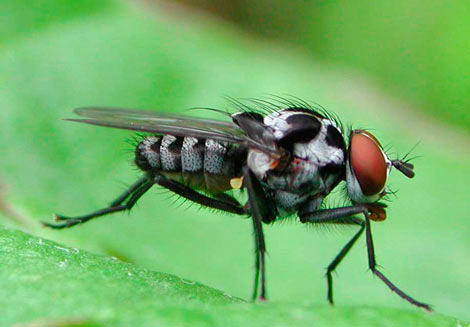La mosca domestica, Musca domestica, appartenente all’ordine dei Diptera, famiglia Muscidae, è un insetto con abitudini diurne, mentre sospende la sua attività durante le ore notturne. Solitamente, le mosche ronzano in gruppi, avendo l’abitudine di aggregarsi. Sono dotate di un apparato boccale allungato a proboscide con il quale succhiano gli alimenti dopo averli sciolti con la loro saliva.
