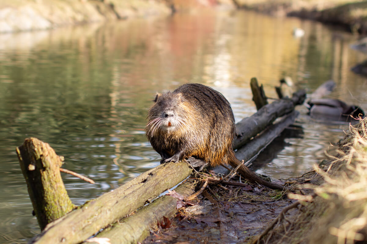 Myocastor coypus (famiglia dei Myocastoridae), nutria o ratto di palude, è un roditore che un po’ assomiglia al castoro (infatti viene anche chiamato “castorino”) o a un topo di grosse dimensioni (pesa dai 6 ai 15 kg ed è lungo 40-60cm) ed è dotato di denti incisivi molto robusti, lunghi e aguzzi, di colore giallo-arancione. È un mammifero roditore originario del Sudamerica, che è stato introdotto agli inizi del ‘900 in Europa per fini commerciali, ovvero per la produzione di pellicce; gli esemplari che poi sono scappati dagli allevamenti sono presto diventati infestanti. Il muso risalta perché è ricoperto di peli e lunghi baffi bianchi, che contrastano con quelli più scuri, marroni o grigiastri, che ricoprono il resto del corpo. Le orecchie e il naso all’insù gli permettono di tenere con più facilità la testa fuori della superficie dell’acqua quando nuota.