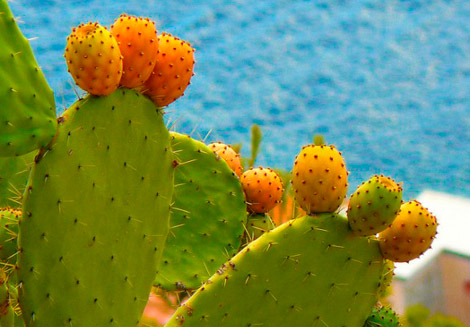 I Fichi d’India sono frutti di una pianta originaria dell’America Centrale (Messico), l’Opuntia ficus-indica. Si tratta di una cactacea dotata di fusti succulenti sui quali sono inserite “pale” (o “cladodi”) carnose,ovali e appiattite, ricoperte da spine. Vive in climi caldi e aridi dove si sviluppa con molta facilità!