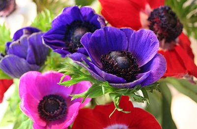 Gli anemoni sono caratterizzati da colori sgargianti: blu, rossi, viola, gialli, bianchi.