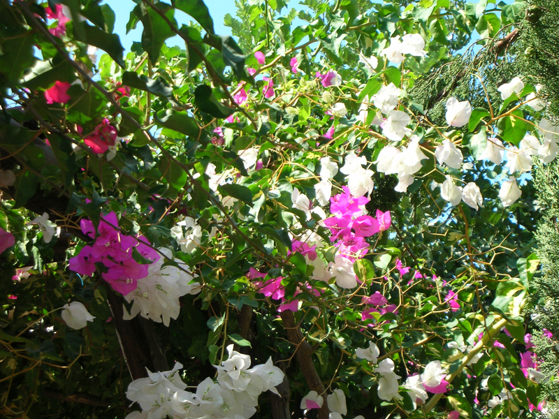 Il nome bouganvillea deriva dal francese Bougainvillée, nome del botanico francese che ha classificato e portato in Europa questa pianta, originaria del Brasile. E’ una pianta che vediamo speso nelle località costiere, dove crea enormi macchie di colore, che vanno dal lilla al bianco all’albicocca, più raramente al giallo o al rosa pallido.Le parti colorate della pianta, dal portamento rampicante, sono in realtà delle brattee, che circondano i fiorellini. La bouganvillea puo’ raggiungere anche dimensioni molto elevate ed è caratterizzata da una elevata longevità. Resiste alla siccità, alla salsedine e in buona misura anche alle basse temperature. Non è facile preda di parassiti. I rami sono spinosi. Le brattee colorate spuntano in primavera e restano “fiorite” per diversi mesi.