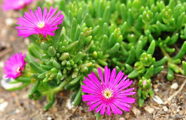 Le delosperma sono piante succulenti, annuali o perenni, originarie dell’Africa meridionale, orientale e del Madagascar. Famiglia delle Aizoaceae. Si tratta di un genere comprendente molte specie e varietà caratterizzate da un portamento strisciante. Le foglie sono di aspetto carnoso e il colore può esser verde scuro o chiaro, secondo la varietà. La fioritura si protrae per tutta l’estate con corolle a margherita dai colori brillanti. Le delosperma si accontentano di poca acqua e non amano i climi troppo rigidi, ma se coltivate in posizioni riparate possono tranquillamente svernare. Sono piante ideali per fare piccole bordure nei giardini rocciosi, ma si possono facilmente posizionare tra muri, ai bordi di scarpate ed anche in vaso per l’effetto ricadente che possono assumere. Le delosperma si integrano molto bene con campanula, Festuca glauca, sempervivum e soprattutto sedum.