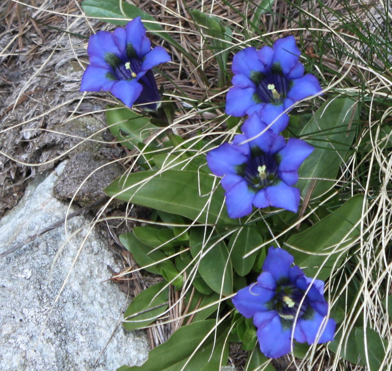 Molto simile è la Genzianella (Gentiana acaulis) con fiori però più piccoli e di un colore azzurro e violaceo.