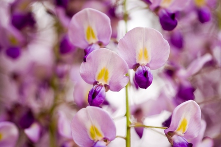 Il Glicine appartiene al genere Wisteria, famiglia delle Leguminosae, sottofamiglia Papilionaceae. Tra le specie più coltivate: Wisteria sinensis, originaria della Cina e introdotta per la prima volta in Europa agli inizi dell’800. Pianta arbustiva rampicante, rustica e vigorosa, con apparato radicale che si espande facilmente. I fusti possono raggiungere i 10-20 m di altezza e necessitano di un supporto per crescere. Il fogliame, deciduo (destinato a cadere in inverno), è formato da piccole foglioline verde chiaro. Le grandi infiorescenze a grappolo, lunghe anche 15-30 cm, gradevolmente profumate, di colore azzurro-lilla, compaiono quando le foglie spuntano appena. I fiori che compongono i grappoli si schiudono tutti insieme, dando uno straordinario effetto di massa. Il periodo di fioritura è generalmente fine inverno-inizio primavera. Il frutto è un legume lungo 8-15 cm. Si conoscono varietà a fiori bianchi, rosati, violacei. W. sinensis ‘Amethyst’ presenta fiori color porpora, profumati e grappoli lunghi 20-30 cm; W. sinensis ‘Prolific’ è tra le più fiorifere, precoce e con grappoli pieni lilla; W. sinensis ‘Alba’ è caratterizzata da fiori candidi soffusi di rosa.
