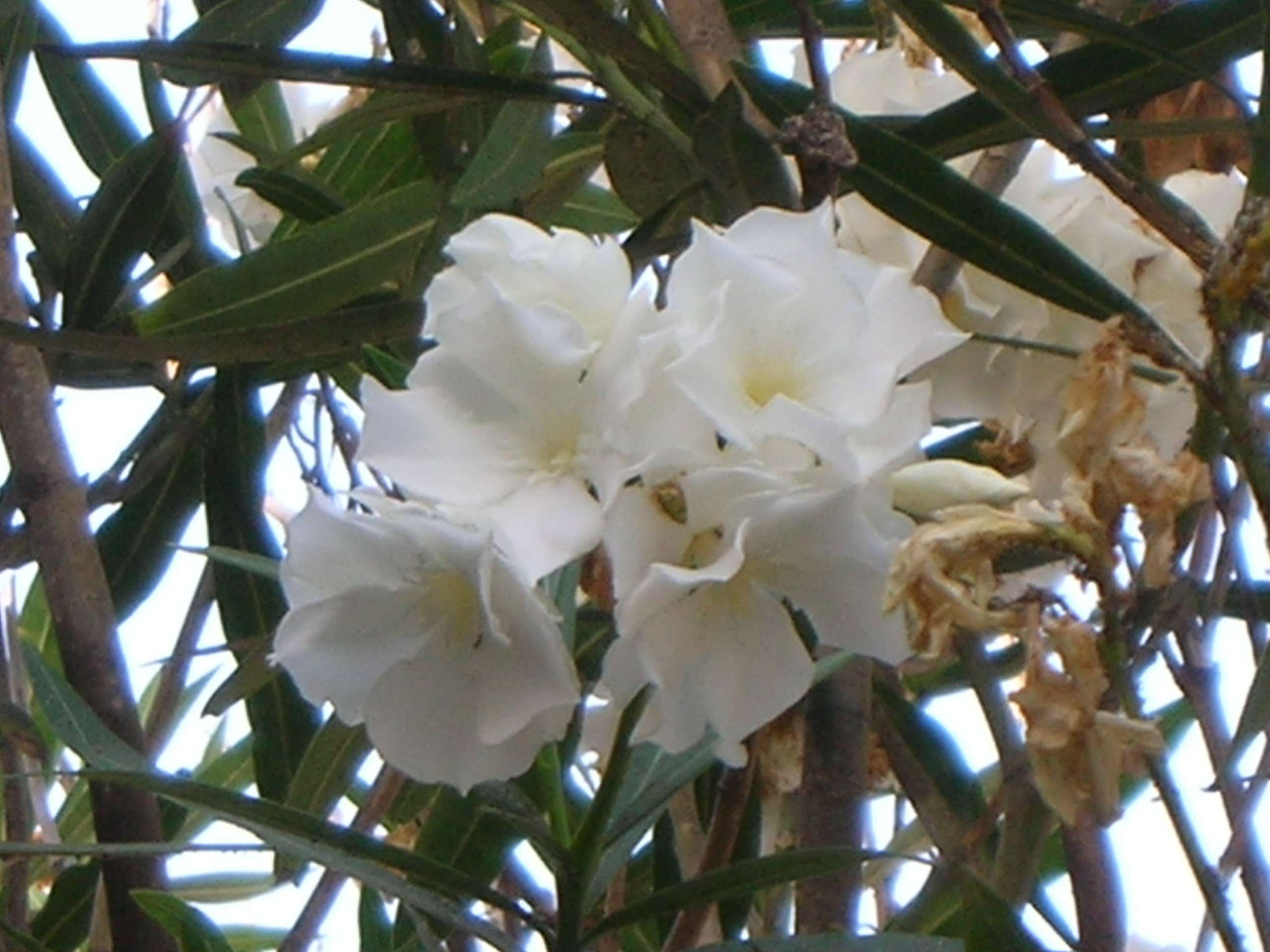 L’Oleandro (Nerium oleander) è un sempreverde, appartenente alla famiglia delle Apocynaceae, molto diffuso in Italia, coltivabile a cespuglio o ad alberello. L’area di origine è il mediterraneo occidentale e il Portogallo; è l’unico rappresentante europeo della sua famiglia botanica, visto che gli altri componenti sono per lo più specie tropicali. E’ spontaneo lungo i corsi d’acqua della fascia litoranea del suo areale; difatti l’etimo del nome stesso del genere (Nerium) deriva dal greco “Nerus“, nome di una divinità del mare. Ha foglie lanceolate di consistenza coriacea e fiori che variano dal rosa al bianco, dal rosso al giallo, e che sbocciano dall’inizio della primavera fino all’autunno inoltrato.