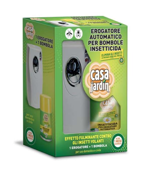 1 EROGATORE + 1 BOMBOLA. Erogatore automatico adatto ad ogni tipo di bombola automatizzata insetticida e deodorante, utilizzabile in ambienti fino a 180 mc. Aerosol insetticida, è a base di Piretro naturale sinergizzato con Piperonil Butossido.