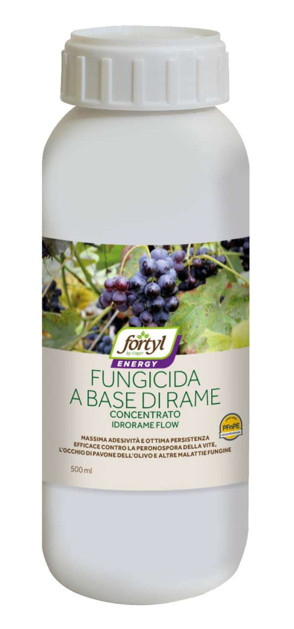 IDRORAME FLOW PFnPE è una sospensione concentrata a base di solfato tribasico di rame, con aggiunta di colorante blu. Questa sospensione rameica è caratterizzata da massima adesività ed ottimale rapporto prontezza d’azione/persistenza. Il suo impiego, diluito in acqua e distribuito come spray, è raccomandato su foglie, parti aeree e/o legnose della vite e dell’olivo in interventi preventivi contro la peronospora della vite, l’occhio di pavone dell’olivo e le altre malattie crittogamiche sensibili al rame. Il solfato tribasico di rame interferisce con il sistema enzimatico delle spore fungine. Gli ioni rameici (Cu2+) una volta rilasciati in acqua, sono assorbiti dalla spora fungina in germinazione. Una volta assorbiti, gli ioni rameici si legano a vari gruppi chimici delle proteine e/o delle membrane cellulari del fungo interrompendo così la sintesi delle strutture funzionali e vitali della spora stessa che non sarà più in grado di proseguire il suo ciclo vitale. Il rame è un fungicida multi-sito che rende estremamente improbabile l’insorgenza di ceppi fungini resistenti.