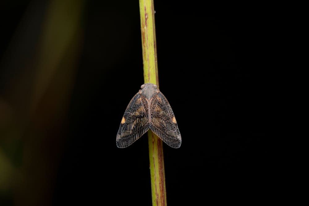 Assomiglia a una farfallina larga non più di 2cm, in realtà è una cicalina, con ali triangolari color grigio-bronzeo e alcune macchie trasparenti: questi insetti si trovano in gruppi numerosi e svolazzano da una zona all’altra della pianta con notevole velocità se disturbati.