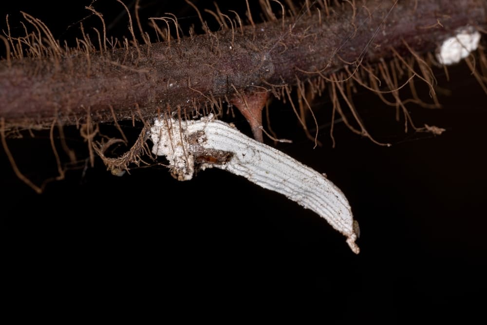 Si tratta dell’ovisacco dell’insetto adulto femminile, il cui sviluppo abnorme determina queste sembianze: contiene migliaia di uova, che daranno origine a nuovi individui dell’insetto, pronti a diffondersi e colonizzare la pianta. L’insetto ha il corpo scudettato, ovale, di colore marrone.
