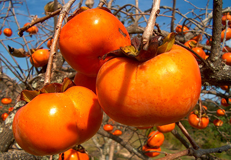 Maestosa e ricca di frutti colorati, la pianta del kaki (Diospyros kaki) fa bella mostra di sé in questo periodo. Maturano, infatti, proprio ora, i primi kaki, tondi e rossi, come palle appese all’albero di Natale!